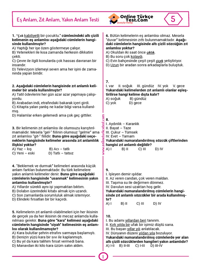 5 snf e anlam zt anlam yakn anlam